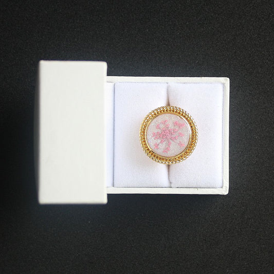 Bague fond blanc avec fleur séchée rose