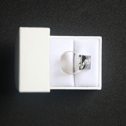 Bague fond noir avec pepites argent