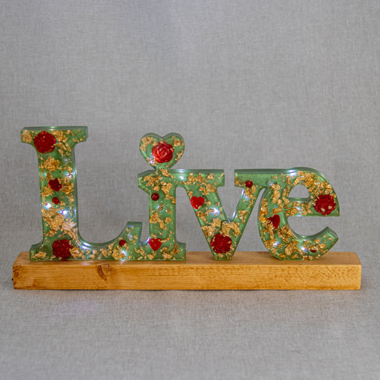 Veilleuse LIVE à LED vert, fleurs rouges et feuilles d'or