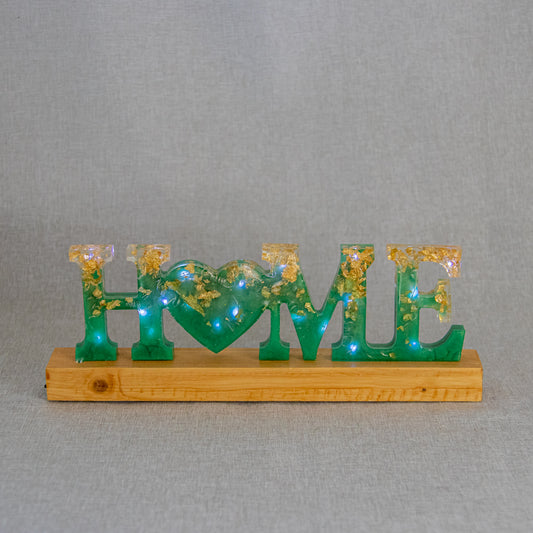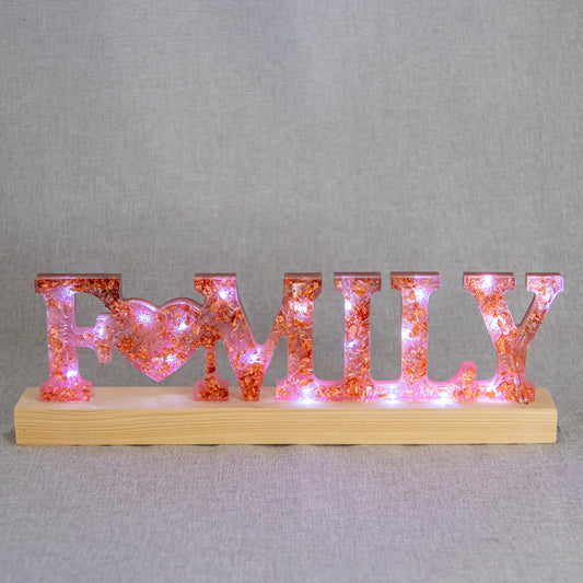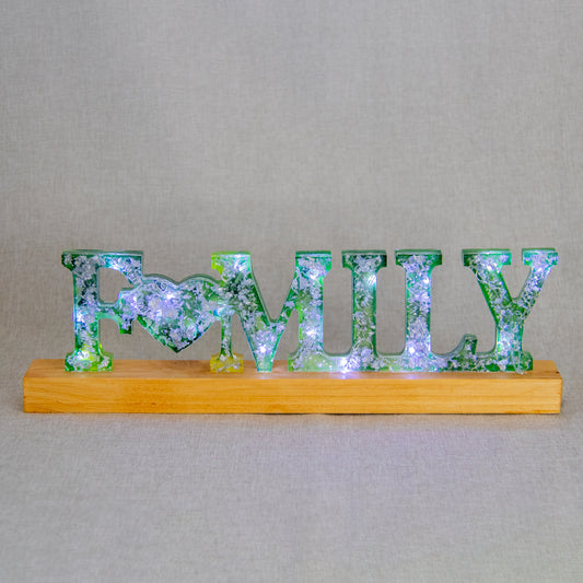 Veilleuse FAMILY à LED vert et feuilles d'argent