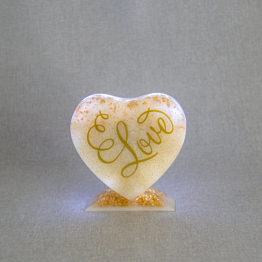 Veilleuse COEUR "Love" à LED blanc et feuilles d'or