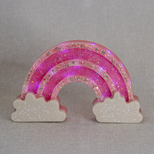 Veilleuse ARC EN CIEL à LED rose paillettes